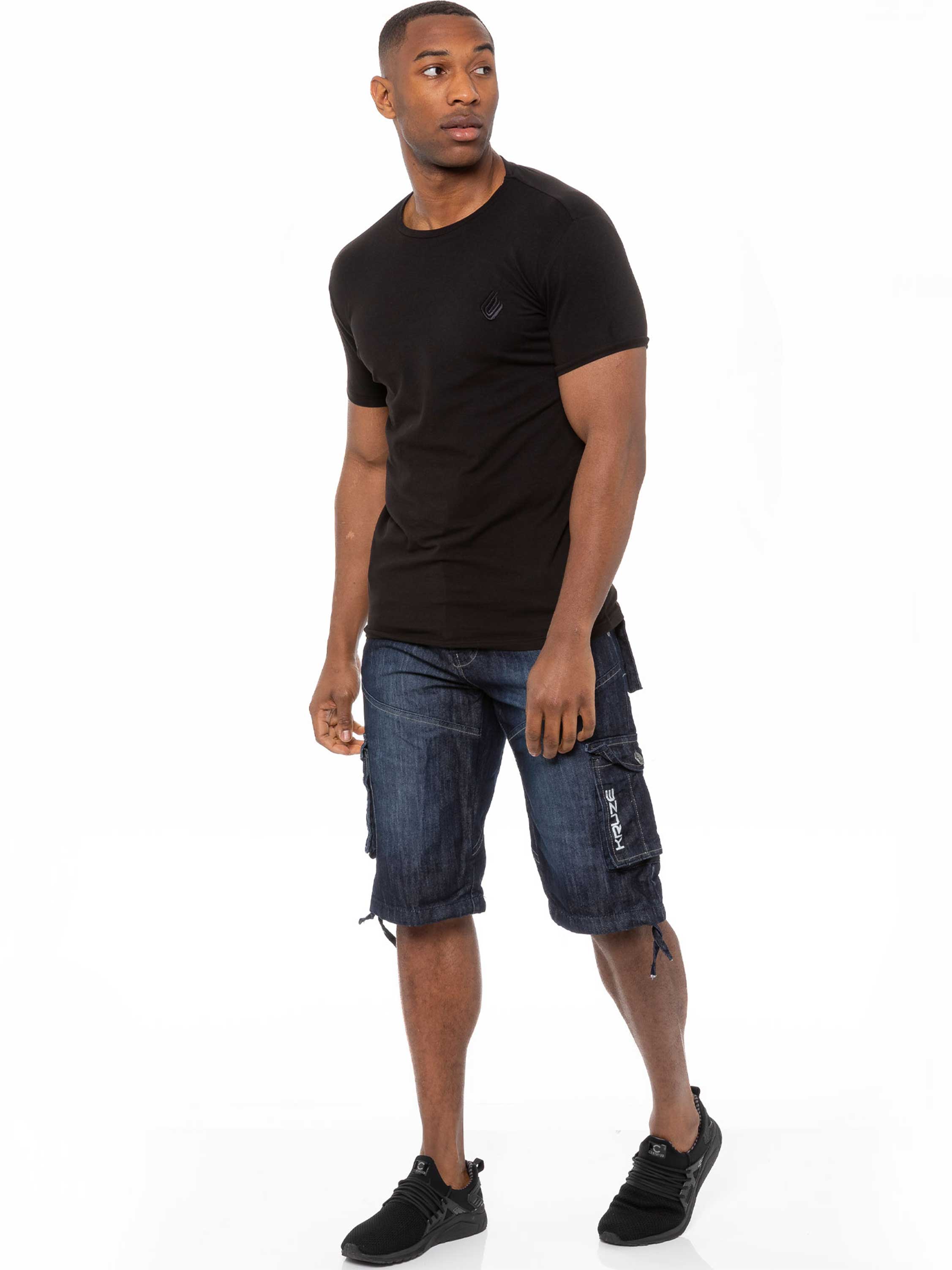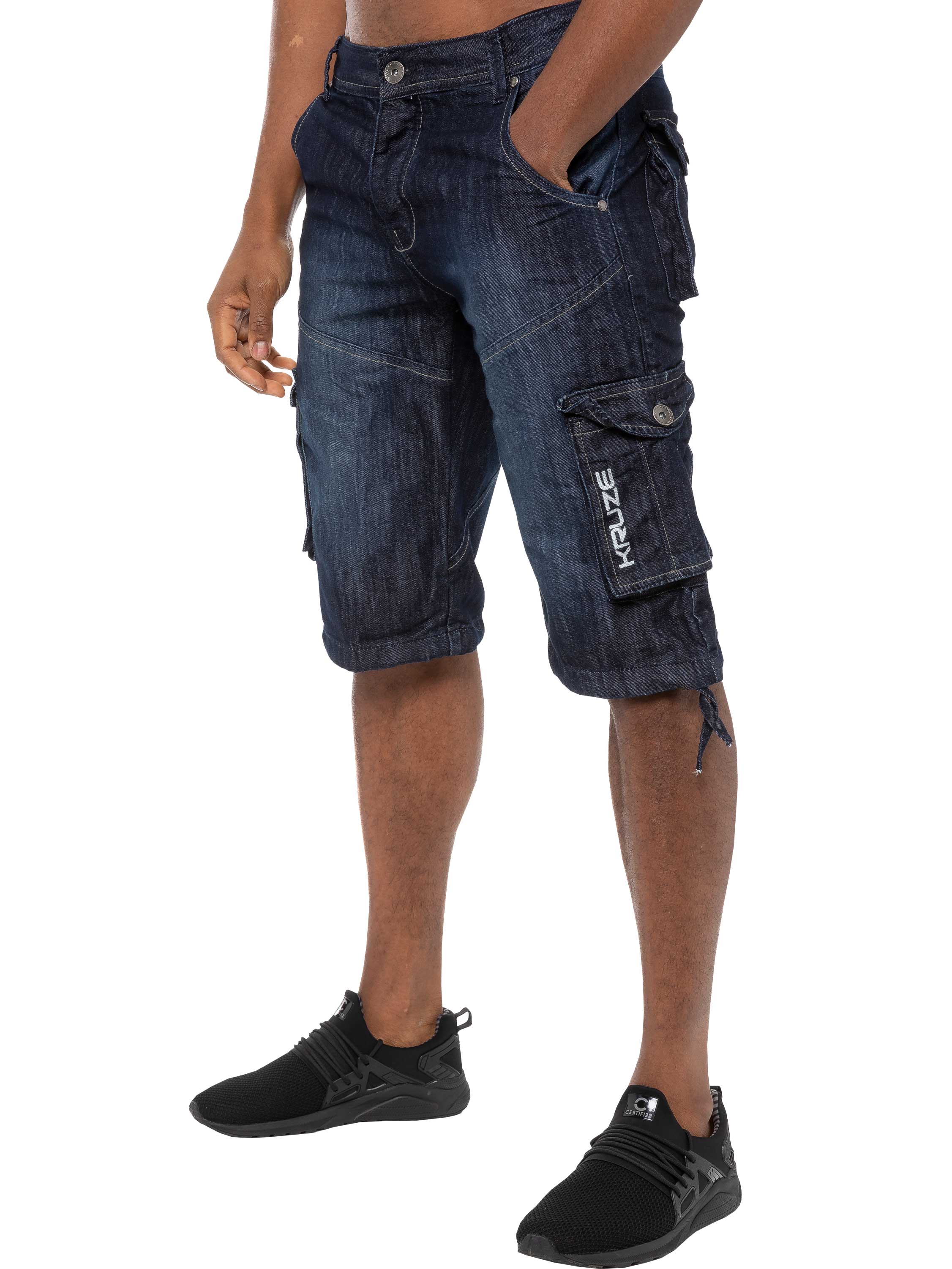 Wesley Mens Cargo Combat Denim Shorts - Dark Blue