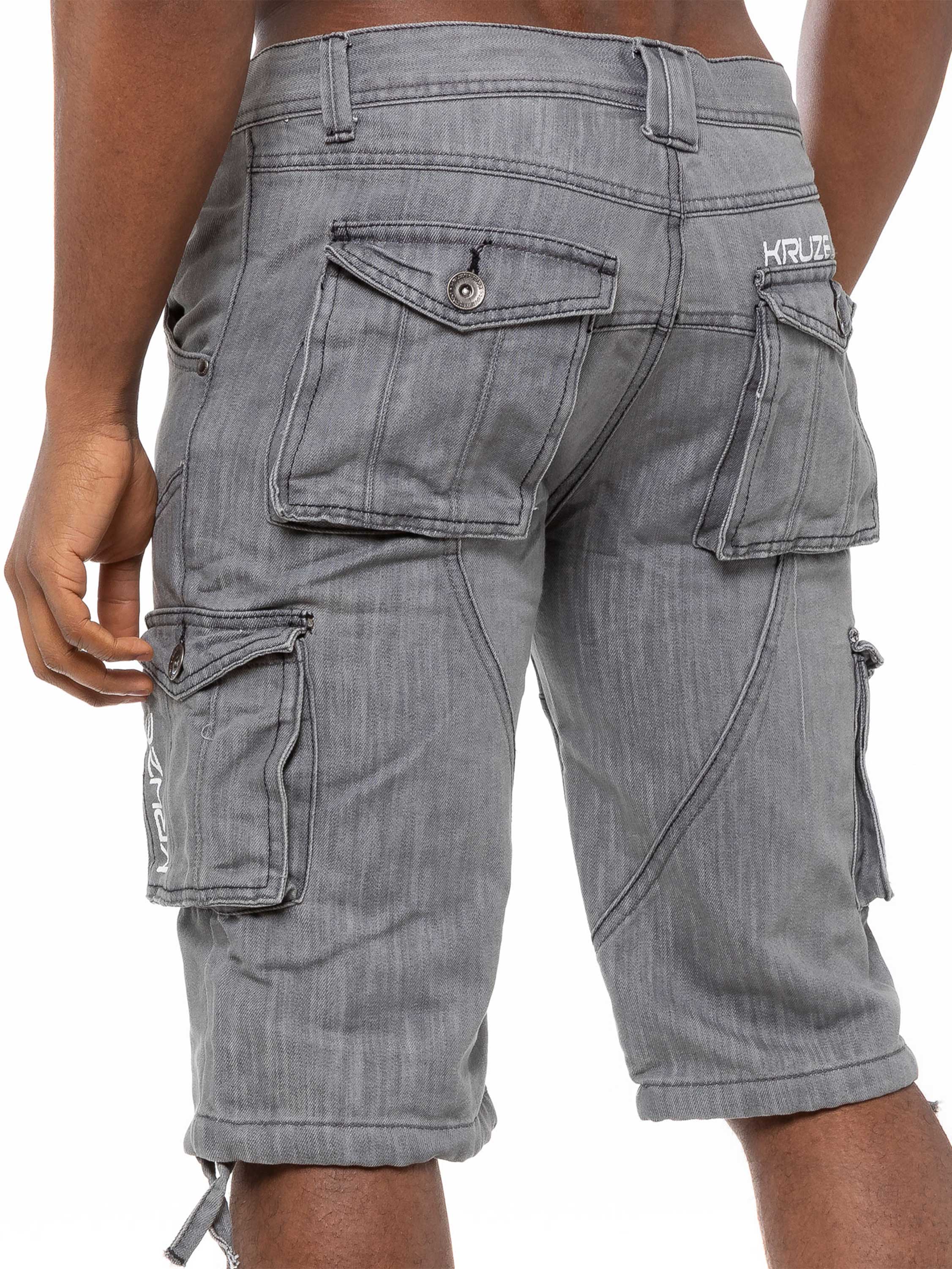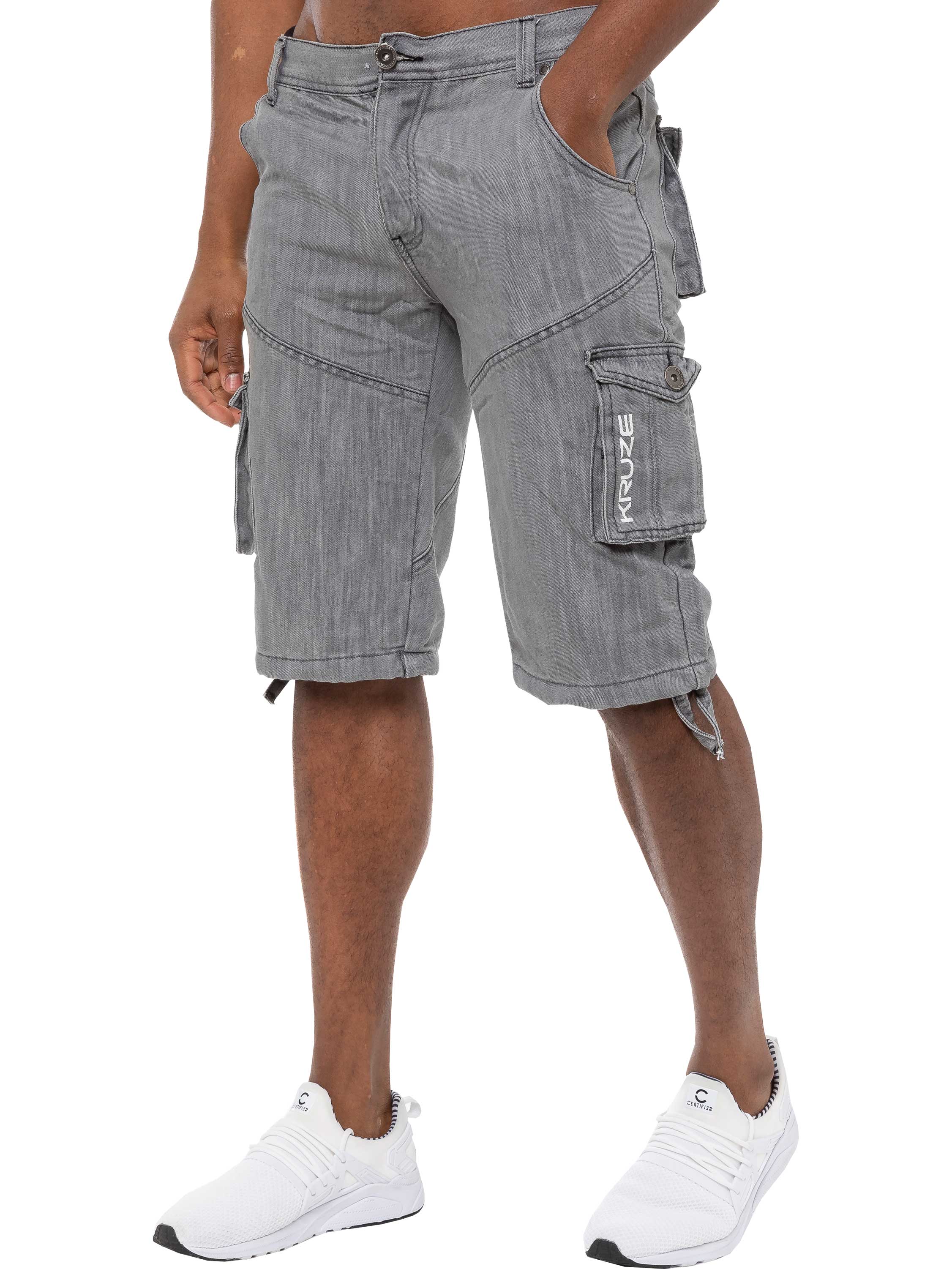 Wesley Mens Cargo Combat Denim Shorts - Grey