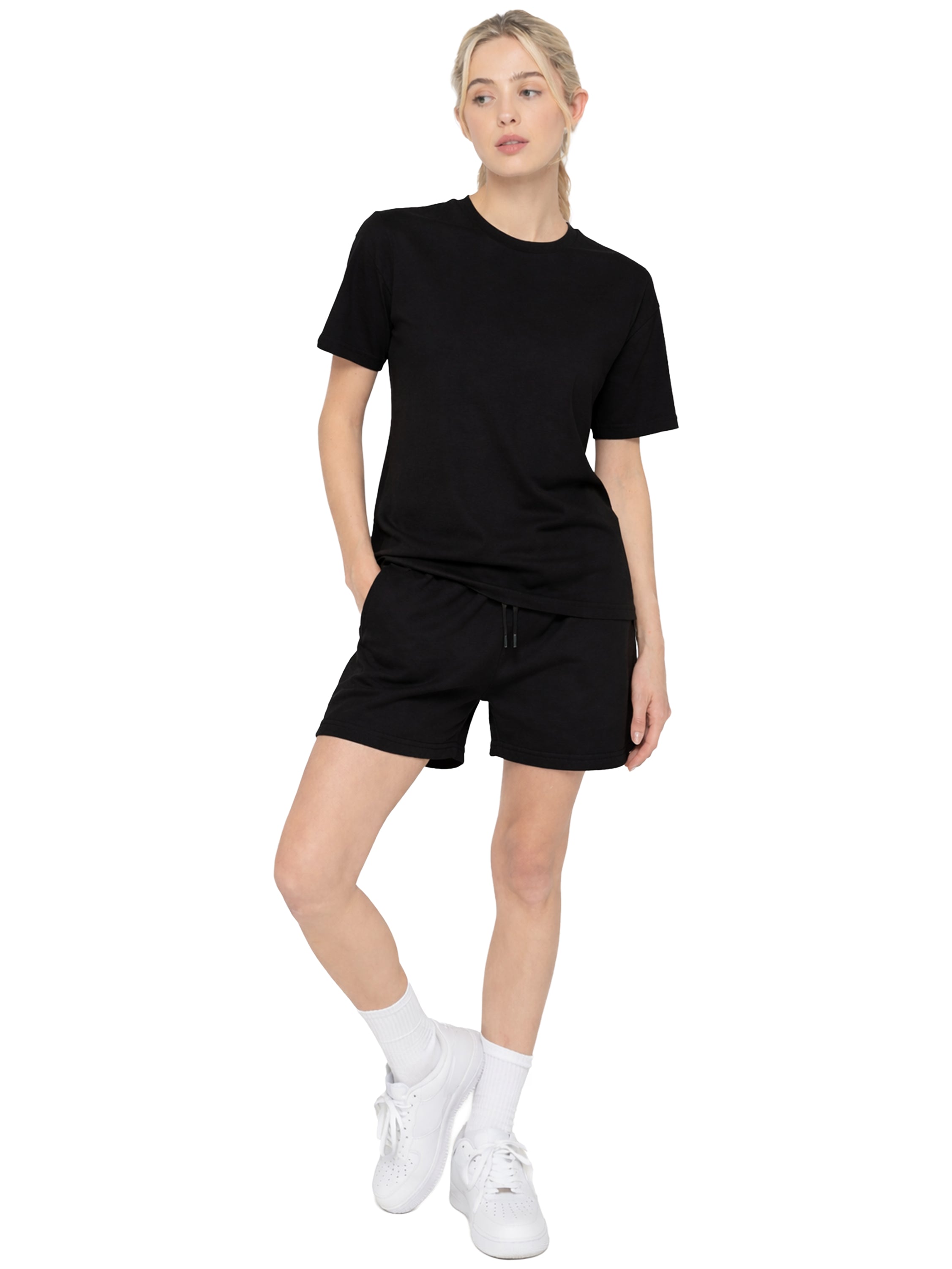 Natalie Crew Neck T-Shirt and Fleece Short Set - Black